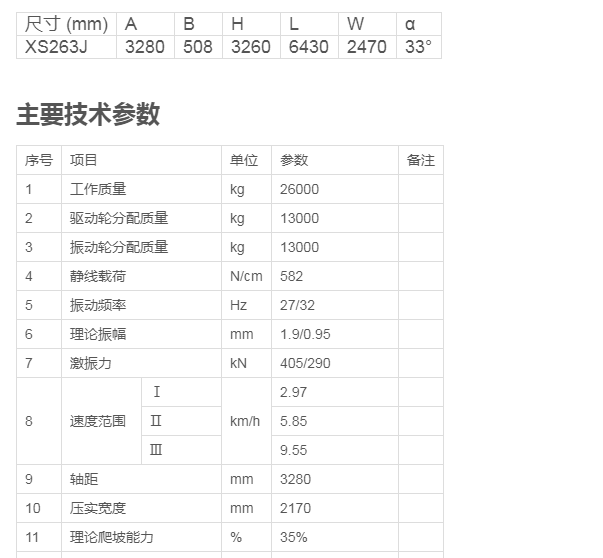 XS263J振動(dòng)壓路機(jī)是有徐工集團(tuán)工程機(jī)械股份有限公司自主研發(fā)的一款高效節(jié)能超重型機(jī)械驅(qū)動(dòng)單鋼輪振動(dòng)壓路機(jī)。該產(chǎn)品總體參數(shù)匹配合理,運(yùn)用低轉(zhuǎn)速發(fā)動(dòng)機(jī),液壓阻尼控制技術(shù),節(jié)能降噪效果明顯;運(yùn)用“三心合一”技術(shù),優(yōu)化傳動(dòng)系統(tǒng),使壓實(shí)性能和效率得到有效提升;采用自主研發(fā)的新型電控操作系統(tǒng),提升了操作的舒適性。適用于對(duì)地面的壓實(shí),適宜于卵石、砂性土壤、冰磧土、爆破巖石和粘性土壤的壓實(shí)作業(yè),也適宜于各種大型工程中對(duì)混凝土、穩(wěn)定土的基礎(chǔ)材料的壓實(shí),是建設(shè)高等級(jí)公路、機(jī)場(chǎng)、港口、堤壩及工業(yè)建筑工地的理想壓實(shí)設(shè)備。