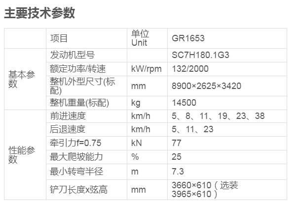 GR1653平地機主要用于公路、機場、農(nóng)田、等大面積的地面平整和挖溝、刮坡、推土、松土、除雪等作業(yè)。是國防工程、礦山建設(shè)、城鄉(xiāng)道路等建筑施工和水利建設(shè)、農(nóng)田改良等必須的工程機械。