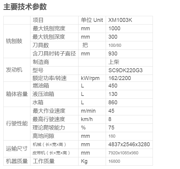 XM1003K是一款具有高性能的一米銑刨機(jī),主要用于公路、城鎮(zhèn)道路、機(jī)場、貨場、停車場等瀝青混凝土面層的開挖翻新?梢愿咝У颓宄访姘b包、油浪、網(wǎng)紋、車轍等;亦可開挖路面坑槽及溝槽;還可用于水泥路面的拉毛及面層錯臺的銑平。該設(shè)備工作效率高,施工工藝劍達(dá),銑刨深度易于控制,操作方便靈活,機(jī)動性能好,銑刨的舊料能直接回收利用,可廣泛地用于瀝青路面的維修翻新養(yǎng)護(hù)施工之中。