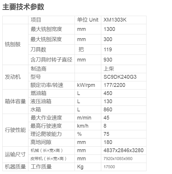 XM1303K是一款具有高性能的一米三銑刨機,主要用于公路、城鎮(zhèn)道路、機場、貨場、停車場等瀝青混凝土面層的開挖翻新?梢愿咝У颓宄访姘b包、油浪、網(wǎng)紋、車轍等;亦可開挖路面坑槽及溝槽;還可用于水泥路面的拉毛及面層錯臺的銑平。該設(shè)備工作效率高,施工工藝劍達,銑刨深度易于控制,操作方便靈活,機動性能好,銑刨的舊料能直接回收利用,可廣泛地用于瀝青路面的維修翻新養(yǎng)護施工之中。